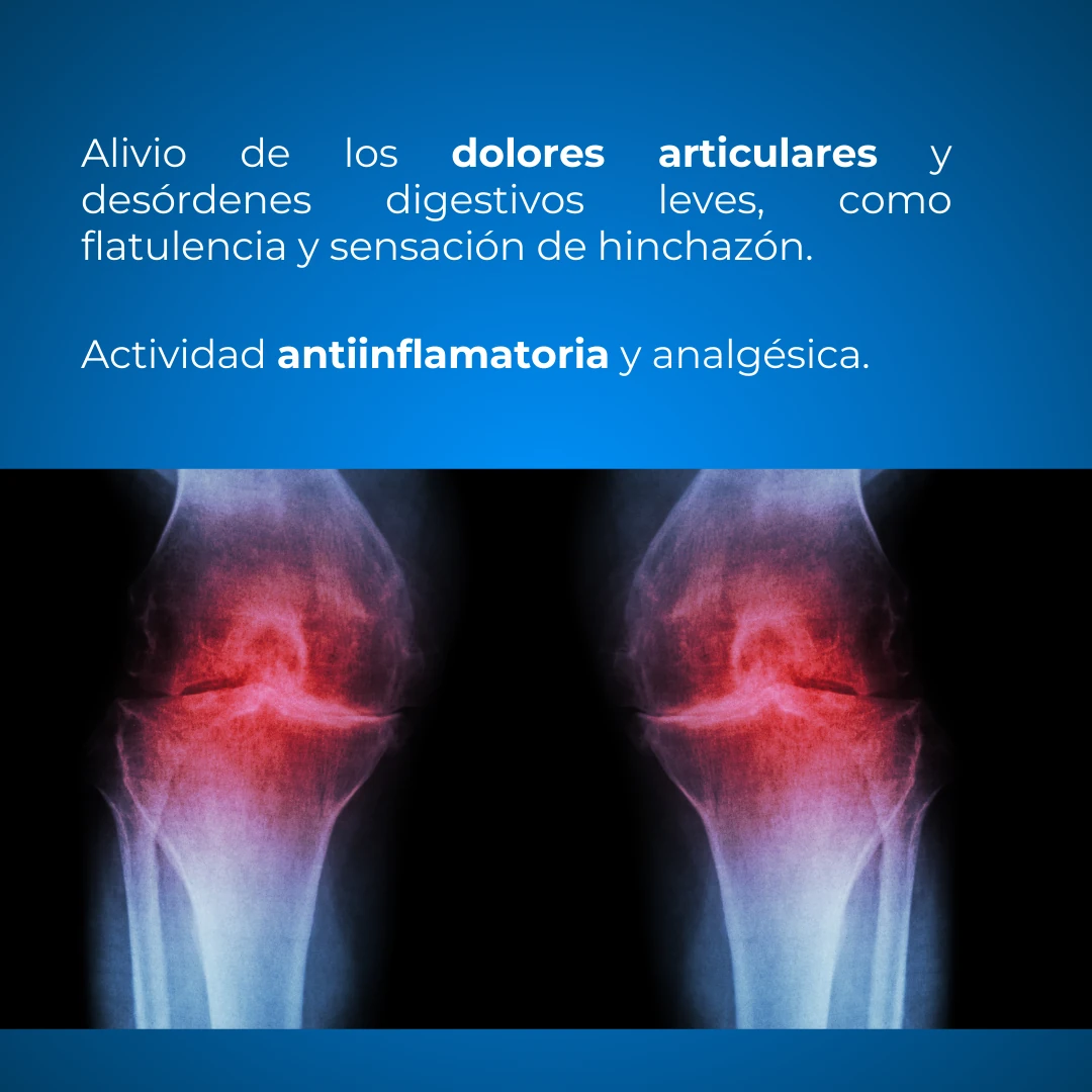 - Alivio de los dolores articulares y desórdenes digestivos leves, como flatulencia y sensación de hinchazón.